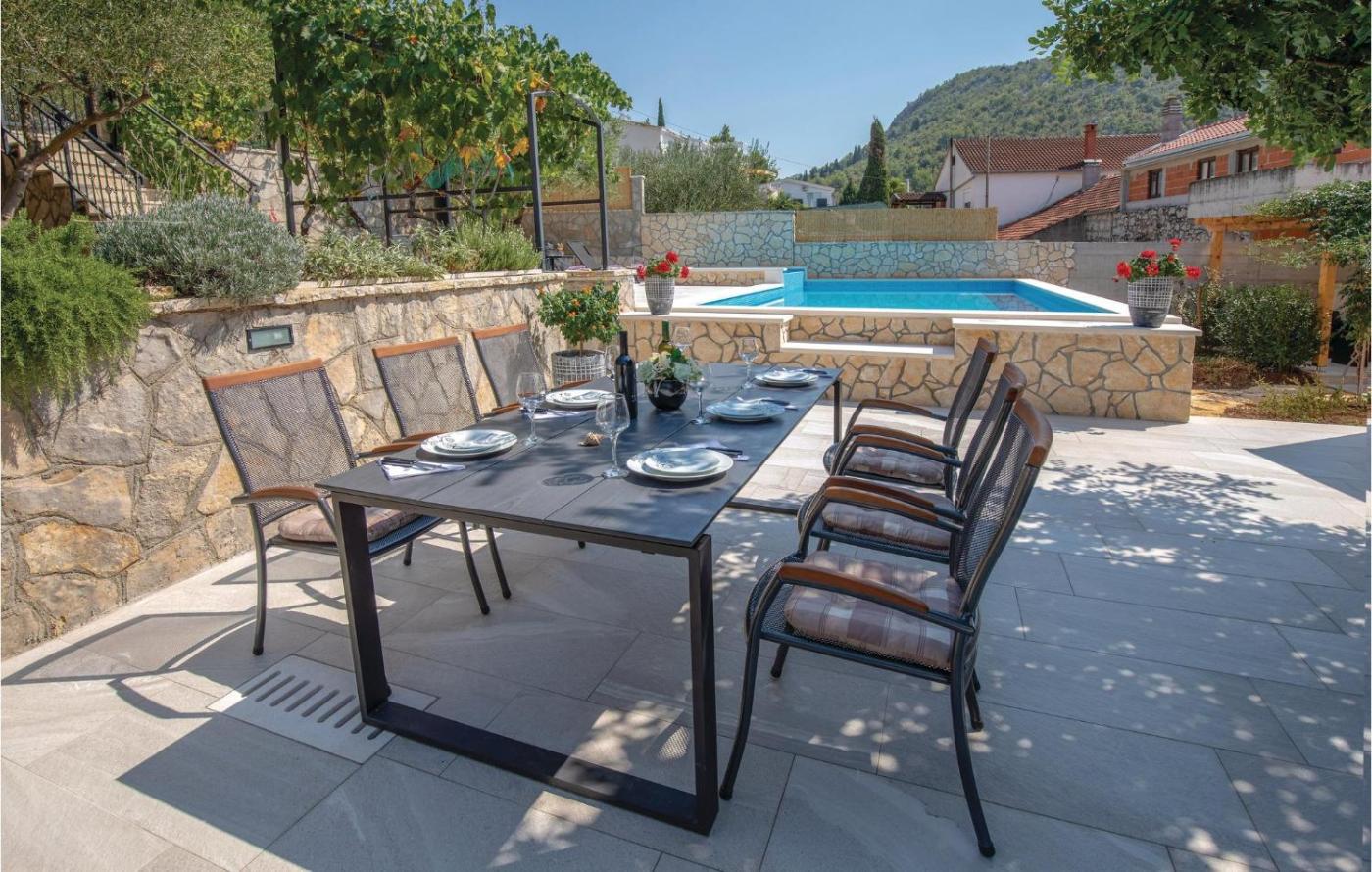 The apartment conveniently has an outdoor pool.