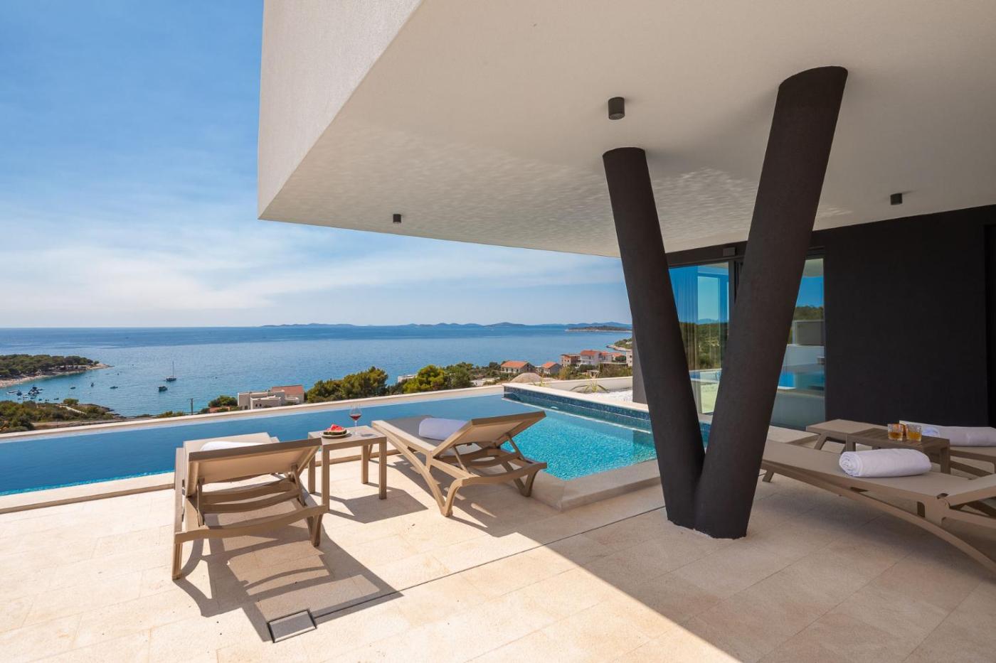 Villa. This luxurious villa provides a private pool, a sauna and a fireplace. Boasting a private entrance, this air-conditioned villa comes with 1 living room, 4 separate bedrooms and 5 bathrooms with a shower and a hairdryer. Guests will find a stovetop, a refrigerator, a dishwasher and an oven in the fully equipped kitchen. The villa also includes a barbecue. The spacious villa features a washing machine, a coffee machine, a seating area as well as a terrace with sea views. The unit has 8 beds.