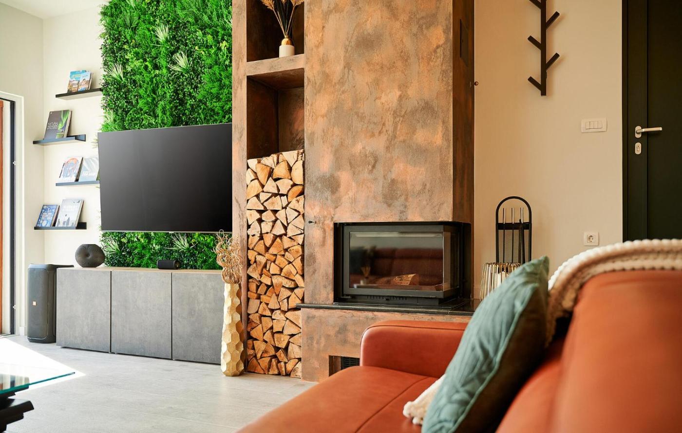 Four-Bedroom Holiday Home. This luxurious holiday home has a private pool, a hot tub and a fireplace. Boasting a private entrance, this air-conditioned holiday home comes with 1 living room, 4 separate bedrooms and 4 bathrooms with a shower and a hairdryer. Guests will find a stovetop, a refrigerator, a dishwasher and kitchenware in the fully equipped kitchen. The holiday home also includes a barbecue. The spacious holiday home features a washing machine, a tea and coffee maker, a dining area, a TV, as well as mountain views. The unit has 4 beds.