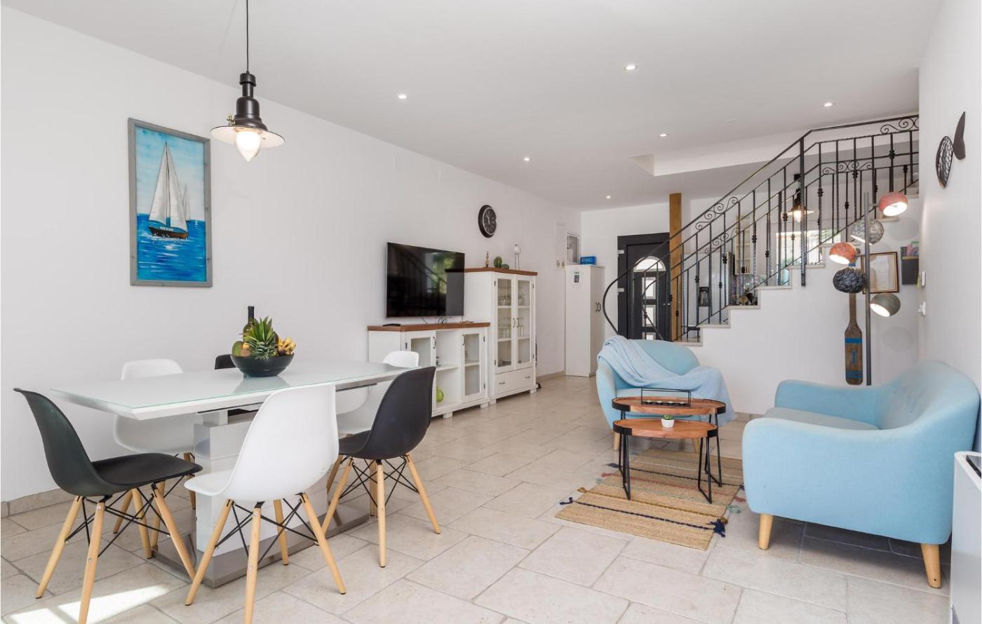 Three-Bedroom Holiday Home. This holiday homes special feature is the private pool. Featuring a private entrance, this air-conditioned holiday home consists of 1 living room, 3 separate bedrooms and 3 bathrooms with a shower. Guests will find a stovetop, a refrigerator, a dishwasher and kitchenware in the kitchen. The holiday home also offers a barbecue. Boasting a balcony with sea views, this holiday home also provides a washing machine and a TV. The unit offers 3 beds and 1 futon.
