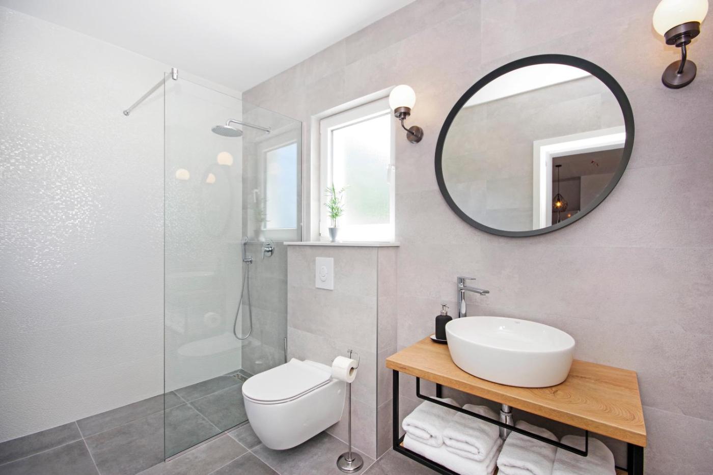 Deluxe Apartment. This spacious apartment comes with 1 living room, 2 separate bedrooms and 2 bathrooms with a walk-in shower and a bath. Guests can make meals in the kitchen that features a stovetop, a refrigerator, a dishwasher and kitchenware. The air-conditioned apartment features a flat-screen TV with cable channels, a washing machine, soundproof walls, a tea and coffee maker as well as sea views. The unit has 3 beds.