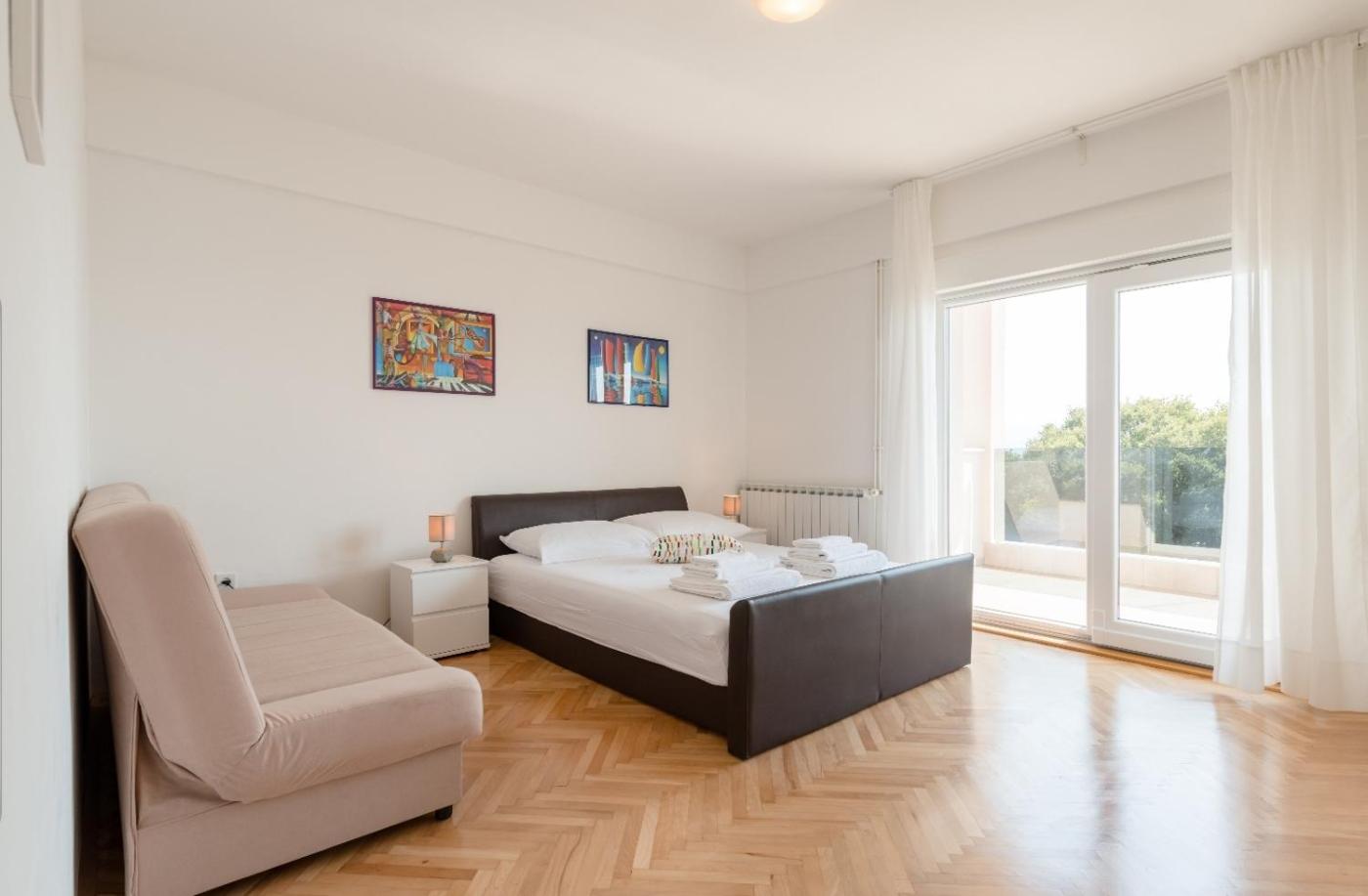 Apartment with Balcony. This spacious apartment comes with 1 living room, 2 separate bedrooms and 1 bathroom with a walk-in shower and free toiletries. The well-fitted kitchen has a stovetop, a refrigerator, a dishwasher and kitchenware. The air-conditioned apartment features a flat-screen TV with streaming services, a washing machine, a private entrance, soundproof walls as well as sea views. The unit has 5 beds. ;