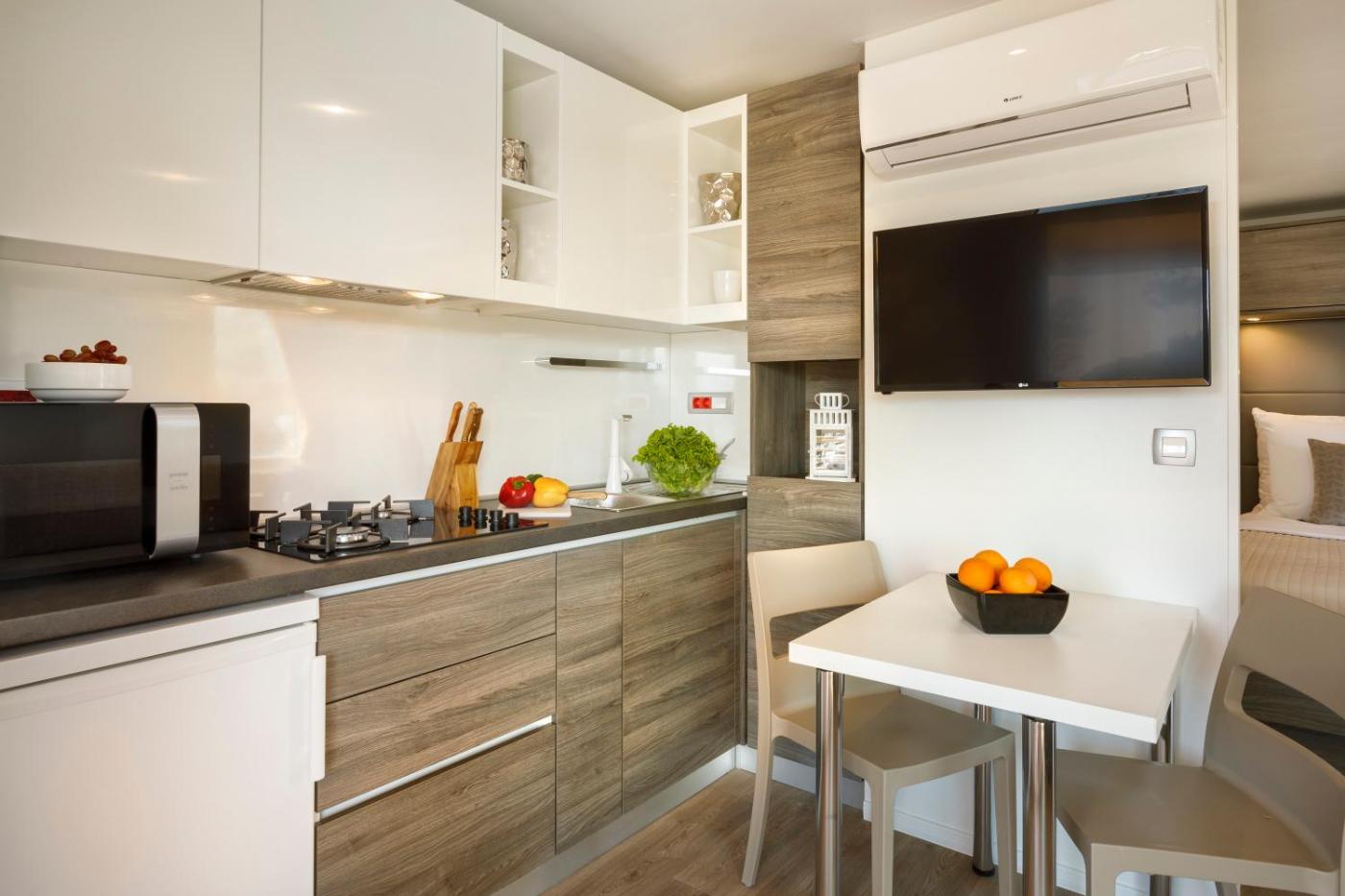 Padova Suite for 4+2. Boasting a private entrance, this air-conditioned mobile home comes with 1 living room, 2 separate bedrooms and 2 bathrooms with a shower. Meals can be prepared in the kitchen, which features a stovetop, a refrigerator, kitchenware and a microwave. This mobile home has a tea and coffee maker, a seating area, a flat-screen TV with satellite channels and a terrace. The unit has 4 beds. ;