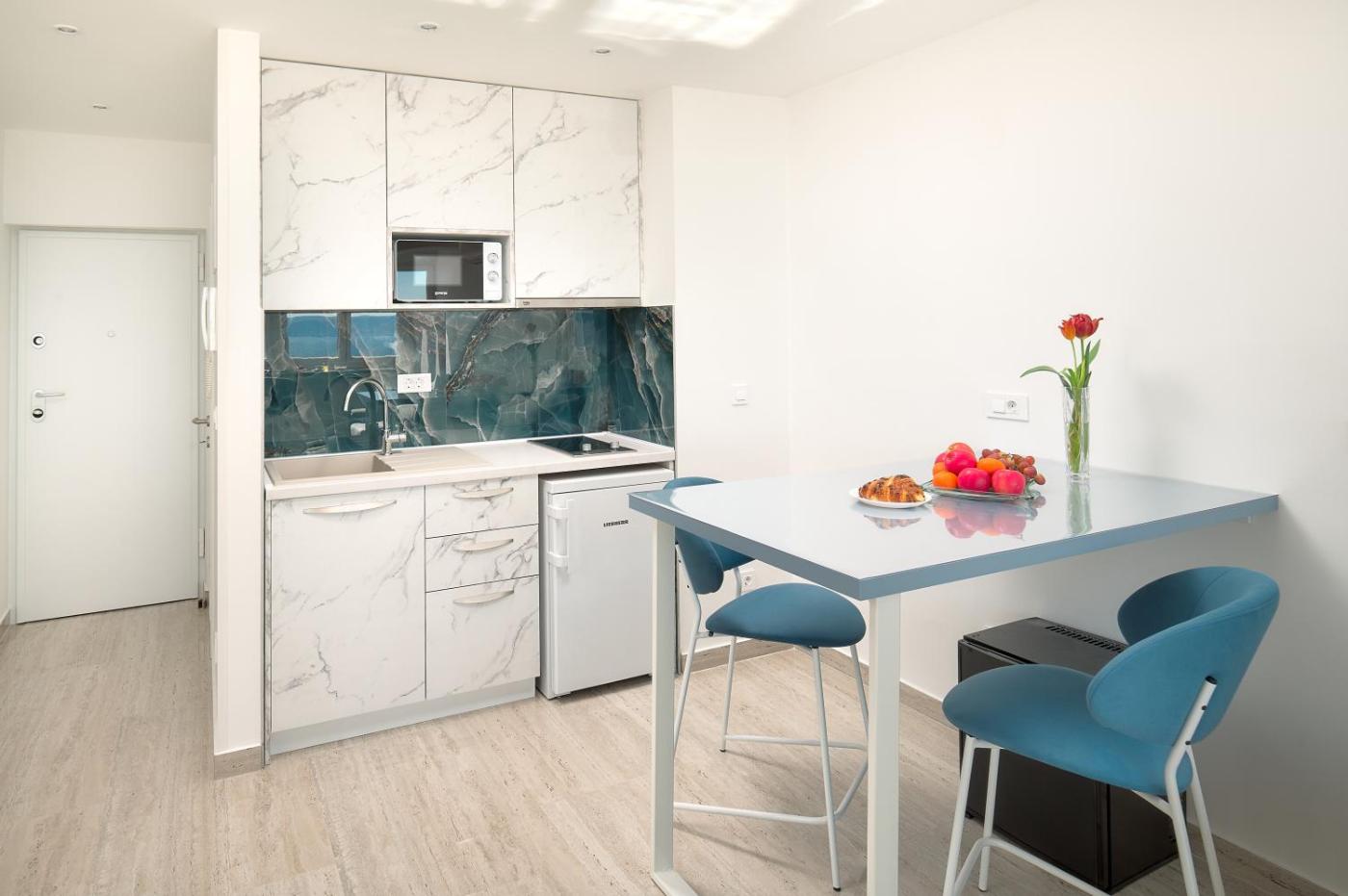 One-Bedroom Apartment. Guests can make meals in the kitchen that has a refrigerator, kitchenware and a microwave. The air-conditioned apartment features a flat-screen TV with cable channels, soundproof walls, a minibar, a tea and coffee maker as well as sea views. The unit has 2 beds.